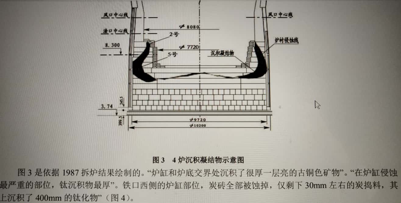 隱形水先侵蝕炭磚熱面,然后造成凝鐵層破壞。不一定是凝鐵層破壞了才發(fā)生炭磚侵蝕。凝鐵層破壞與炭磚侵蝕的因果關系、主次關系應該重新定位。